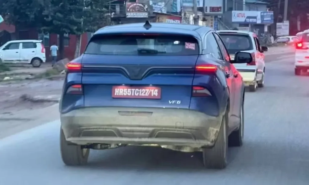 पीछे के हिस्से में VinFast VF6 को कनेक्टेड LED टेल लैंप्स और फुल-विथ लाइट बार के साथ देखा गया। ऊपर की ओर इंटीग्रेटेड रूफ स्पॉइलर है, जबकि टेलगेट पर कंपनी का ‘V’ लोगो उभरा हुआ है। रियर बंपर पर ड्यूल-टोन फिनिश दी गई है, जिसमें डिफ्यूज़र जैसा डिजाइन है। कॉम्पैक्ट होते हुए भी इसका स्टांस काफी बोल्ड और ग्लोबल-स्पेक मॉडल जैसा दिखता है।